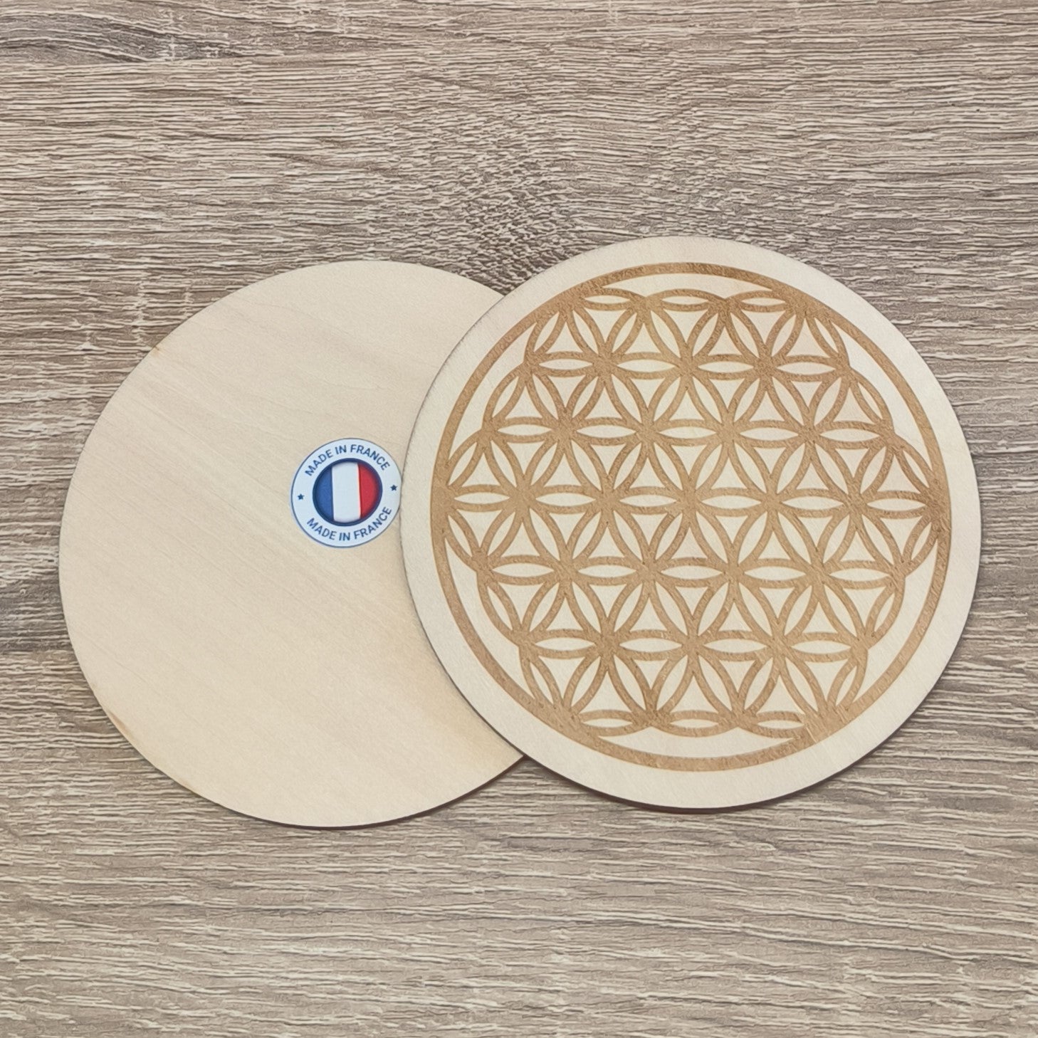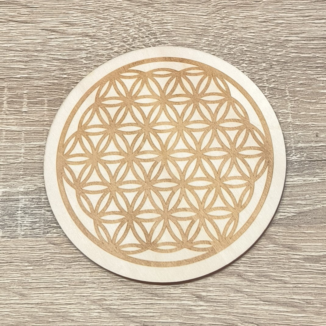 Plaque Fleur de Vie Gravée Bois 10cm